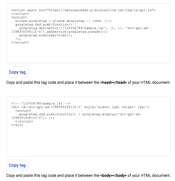Publishers can also use their adserver to call the tag by creating a 1x1 ad unit and placing the Invocation script in the creative for that 1x1 ad unit (Please disable safe frame for the creative). Example of a DFP 1x1 ad unit: